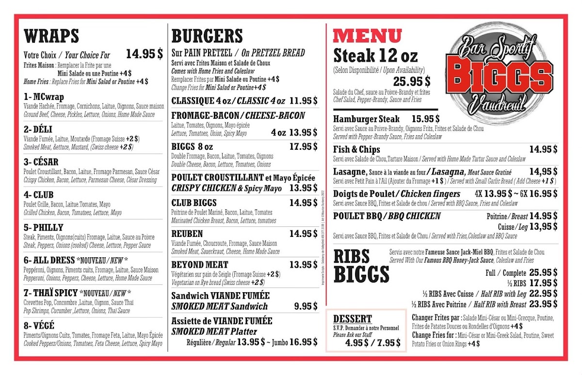 If you're looking for a place to unwind with good food and great company, Bar Sportif Biggs is a must-visit. Don't miss out on this delightful dining experience!